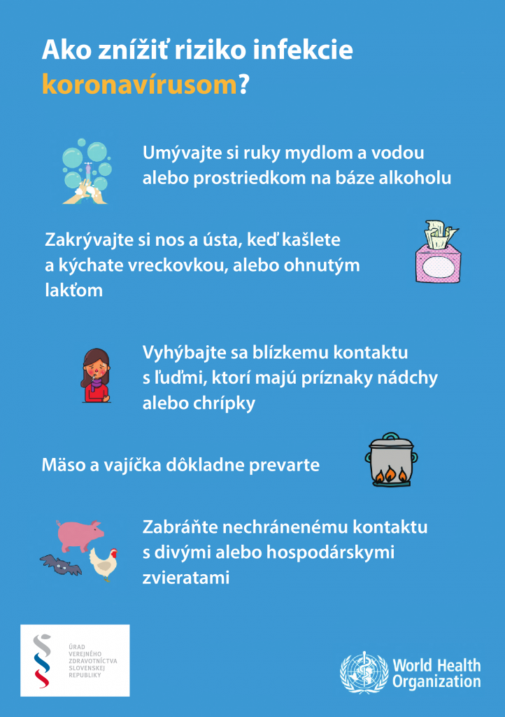 Ako znížiť riziko infekcie koronavírusom? Pridane : 8. marca 20208. marca 2020 adminPridane v : COVID-19, Rady Ako znížiť riziko infekcie koronavírusom?
